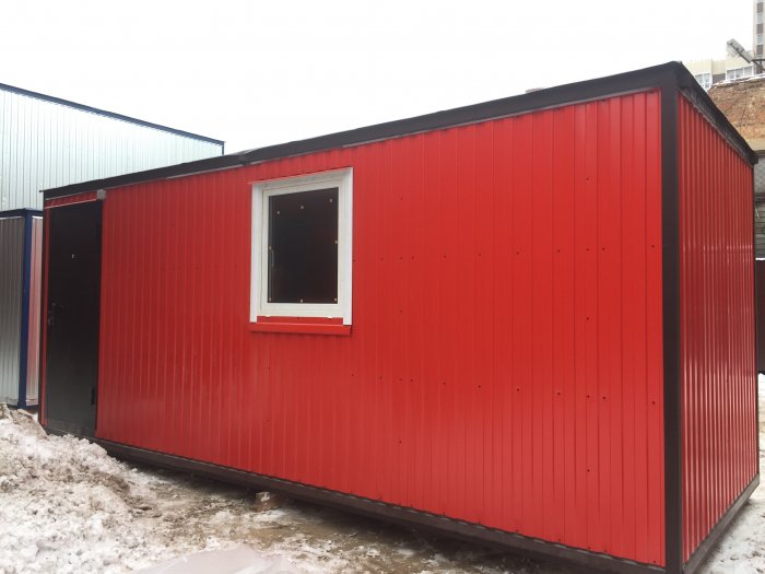Дачный дом из блок-контейнера, красный профлист с размерами 6.0x2.4x2.5 м. Внутренняя отделка выполнена из ДВП/ДСП, внешняя - Цветной. Бытовка оснащена шт. окнами/окном и дверью. Термоизоляция и гидроизоляция бытовки состоит из: Полиэтиленовая пленка 100 мкм. и KNAUF Insulation Термо 50 мм., что позволяет сохранять приемлемую температуру в помещении. Срок гарантии составляет: 6 месяцев. Страна производства - Россия.