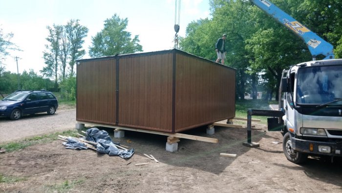 погрузка бытовки 6 м краном-манипулятором