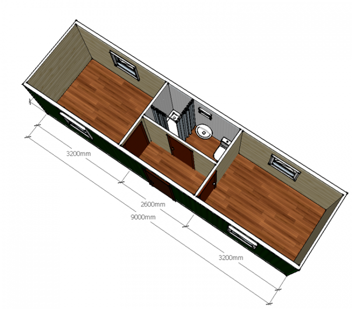 - Размещение строительных бригад. Две изолированные комнаты для раздельного проживания бригадира и рабочих или двух бригад.